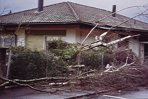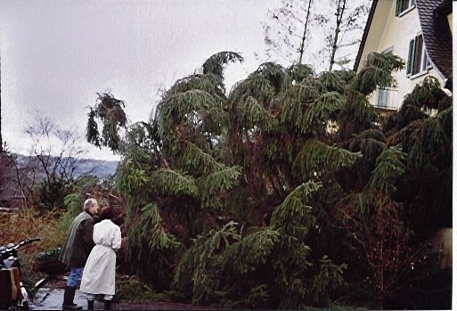 Hier sind einige Fotos der Auswirkungen des Orkans Lothar vom 26. Dezember 1999. Klicken Sie auf die Miniaturbilder, um die Fotos in Vollgrösse zu sehen, und benutzen Sie anschliessend die Schaltfläche Zurück des Webbrowsers, um zu dieser Seite zurückzukehren.